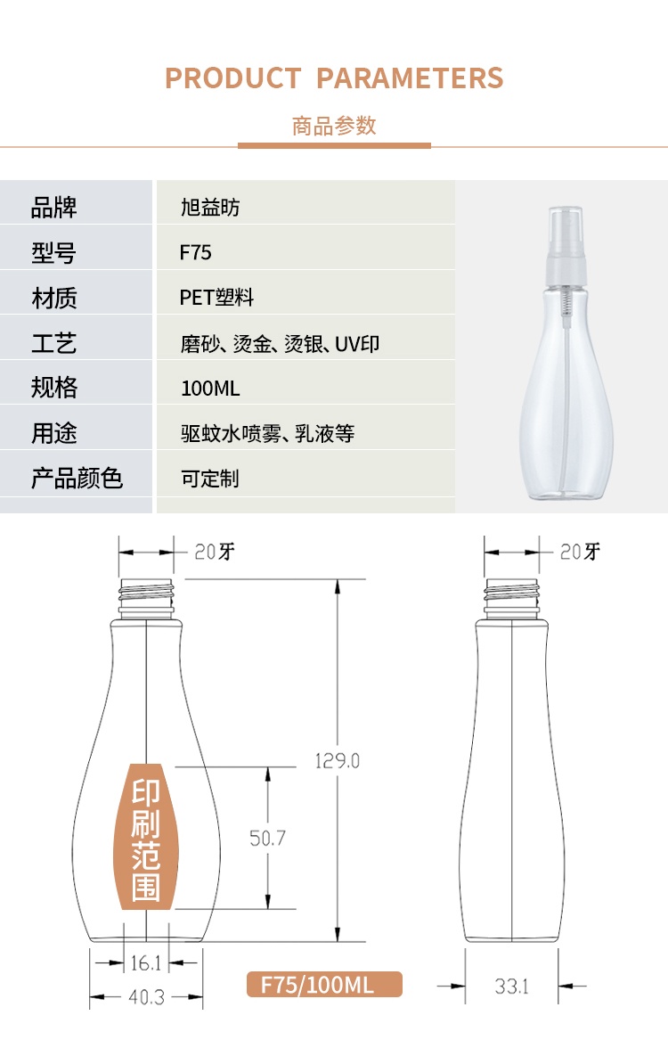 100ml透明乳液瓶宠物化妆品乳液分配器瓶驱蚊喷雾瓶