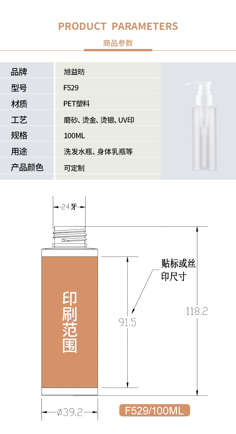 100ml磨砂乳液瓶清肩乳液瓶化妆品包装洗发水瓶
