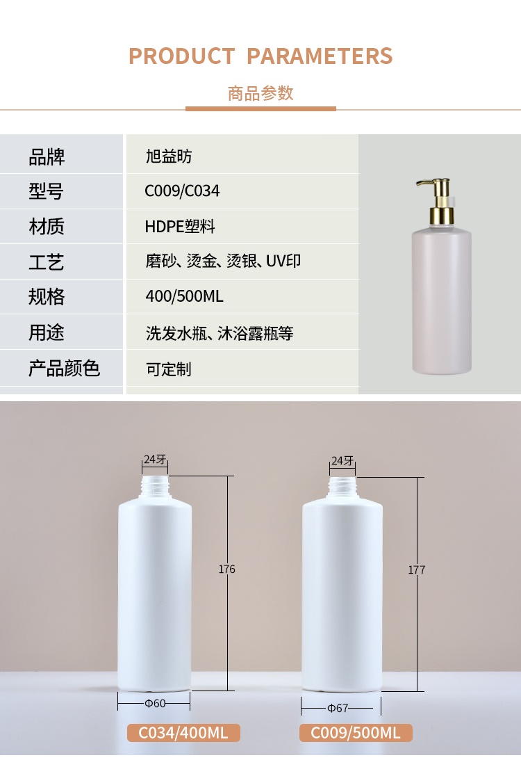 400/500ml洗液瓶沐浴露洗发水瓶化妆品护肤品身体乳塑料瓶