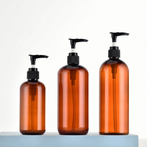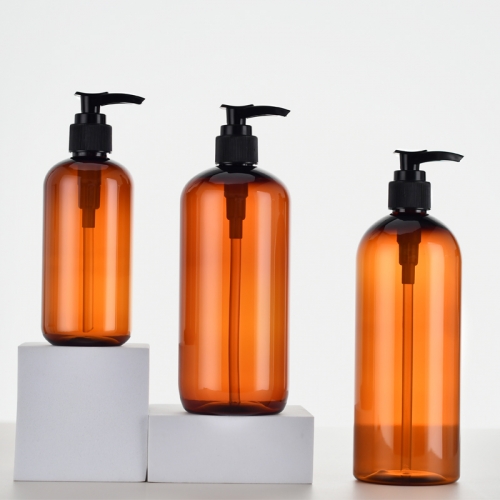 250/500毫升化妆品塑料容器茶色洗发水沐浴露瓶圆形PET塑料瓶