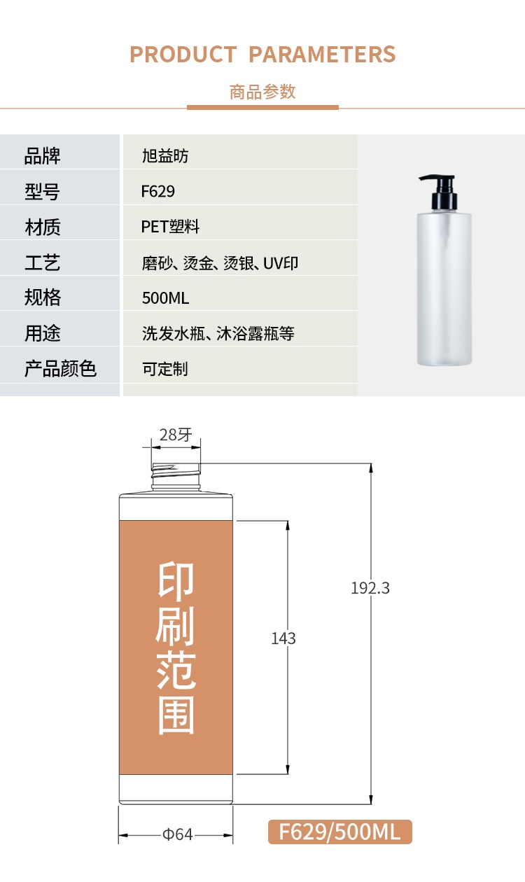 500ml洗液瓶按沐浴露洗发水瓶化妆品瓶